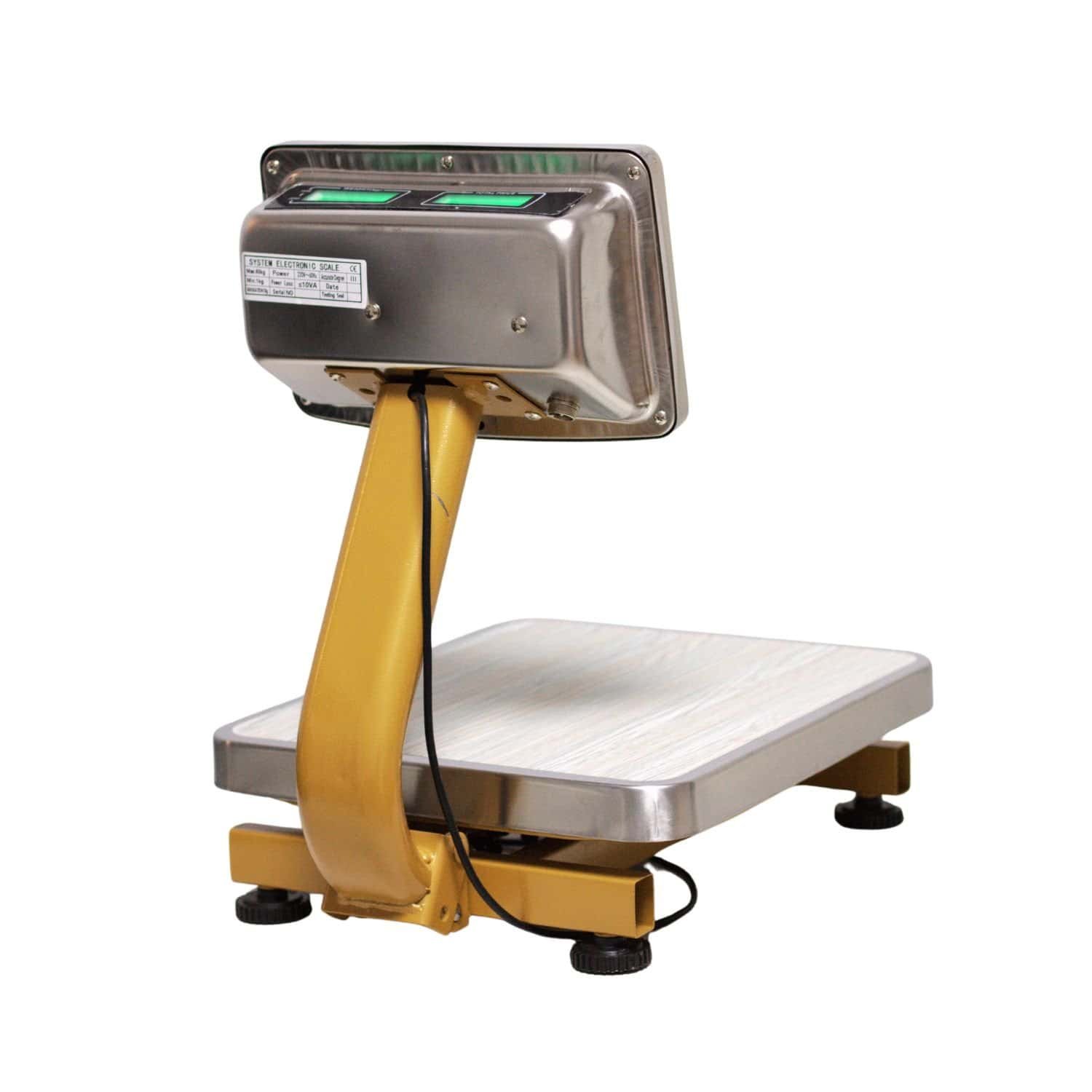 Elegante brazo dorado, es perfecta para negocios que buscan precisión y resistencia. Diseñada para soportar hasta 60 kg, ofrece una pantalla LCD doble (operador y cliente) con iluminación ajustable, garantizando una lectura clara en todo momento.
