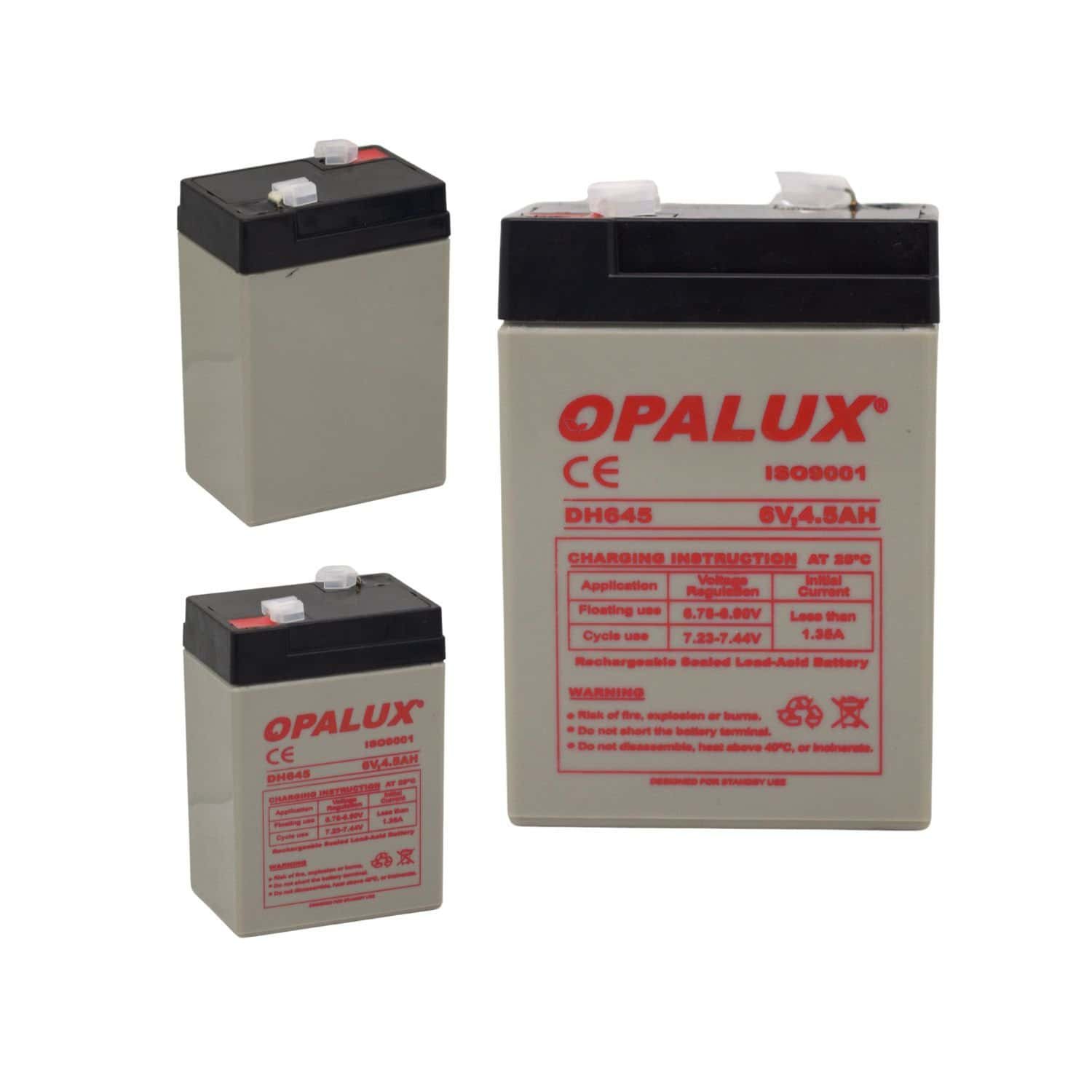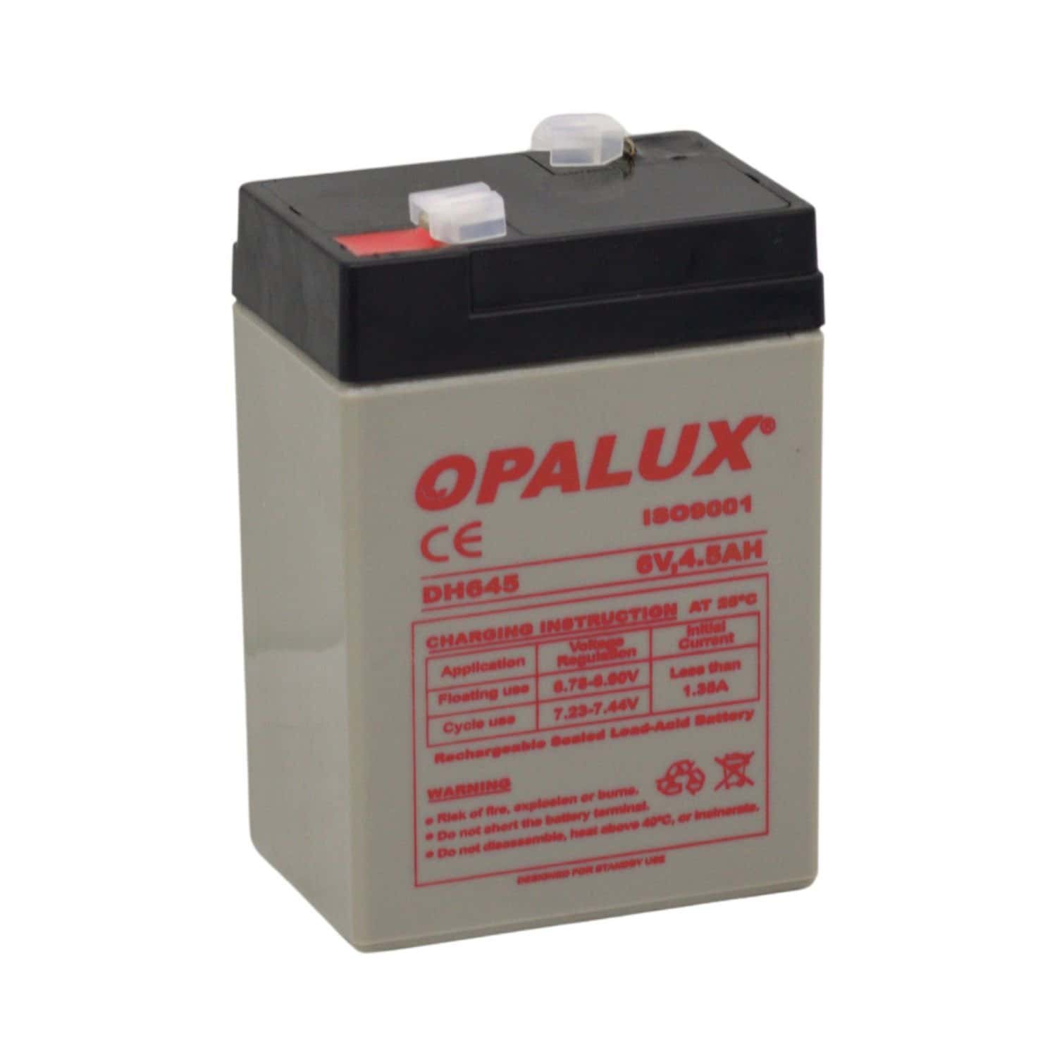 Batería sellada de plomo-ácido (VRLA) con una capacidad nominal de 4.5 amperios-hora (Ah) a 6 voltios (V).
