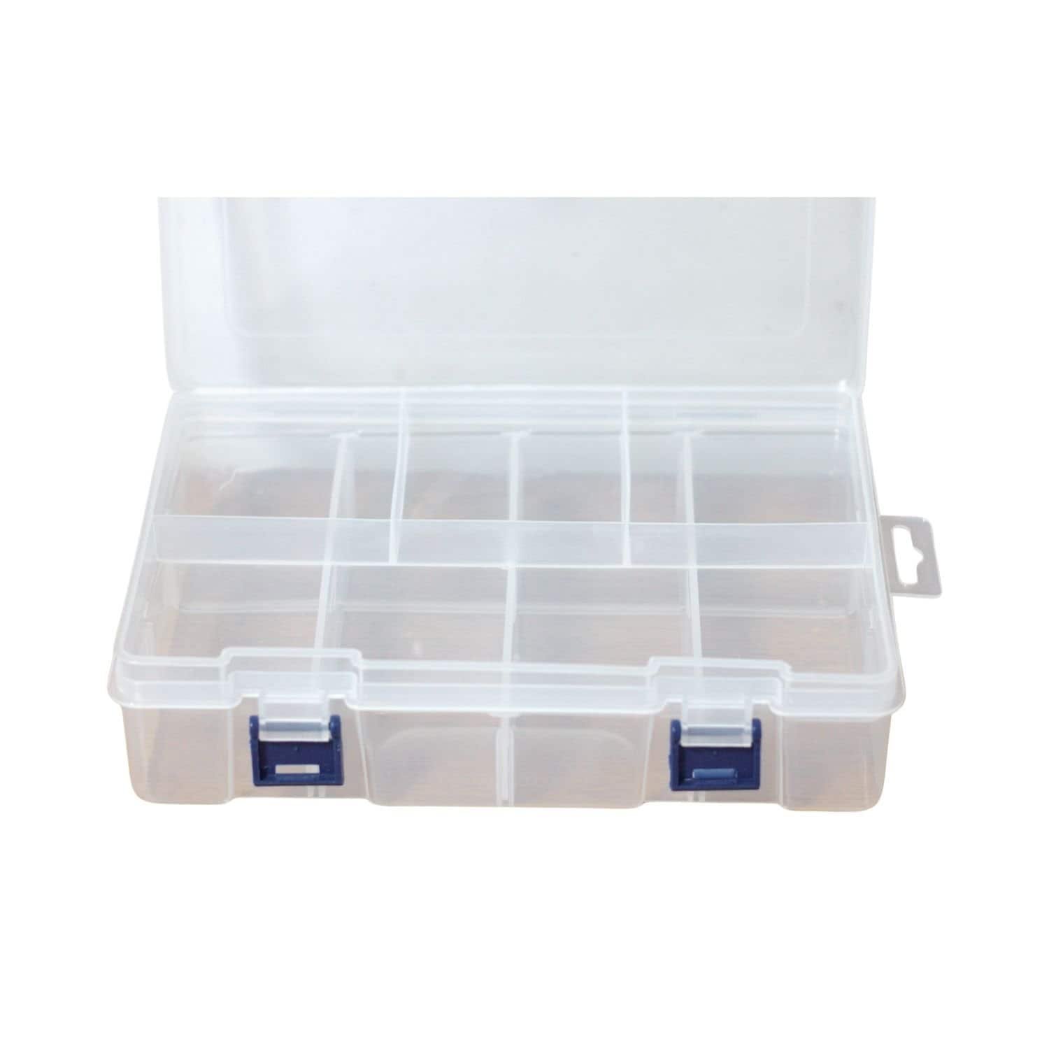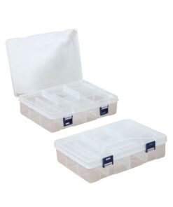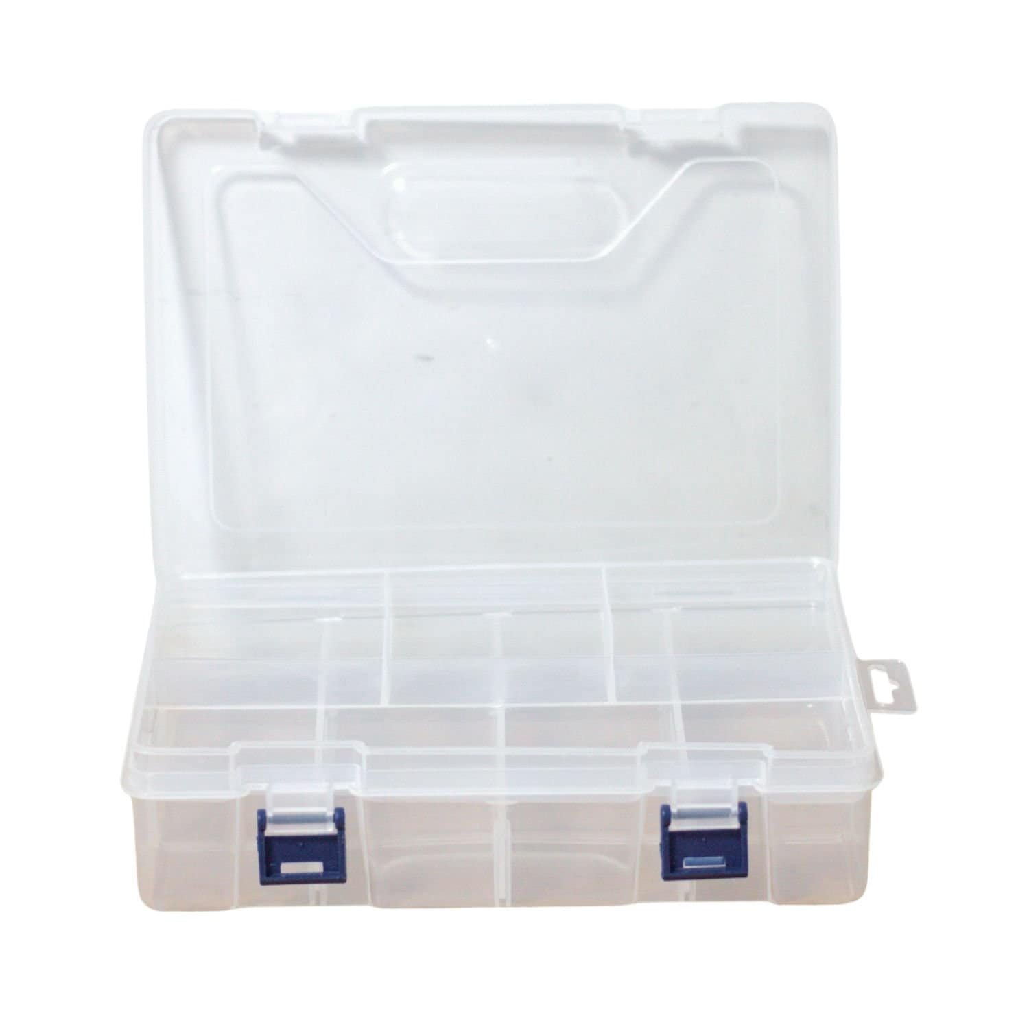 Fabricada en plástico transparente resistente. Cuenta con tapa de bisagras y cierre frontal asegurado para evitar aperturas accidentales. Incluye divisiones internas configuradas para almacenar componentes pequeños como tornillos, pines, cables, repuestos electrónicos o piezas de Arduino. Su diseño compacto permite transportarla y guardarla con facilidad, manteniendo la visibilidad completa del contenido.