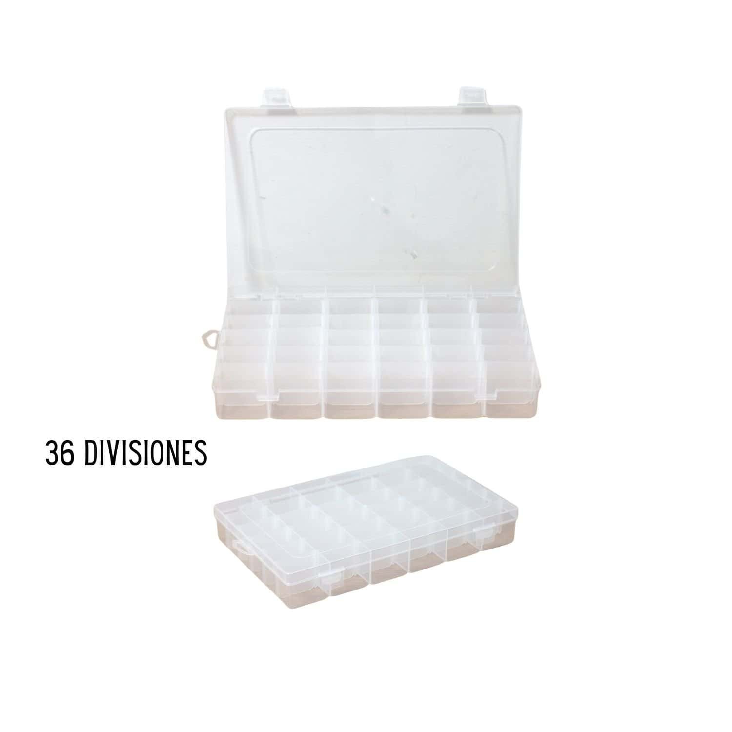 Práctica para clasificar y almacenar objetos pequeños como tornillos, tuercas, repuestos electrónicos, bisutería, accesorios y más. Su diseño transparente permite visualizar rápidamente el contenido sin necesidad de abrirla. Incluye 36 divisiones internas que mantienen cada elemento separado y protegido.