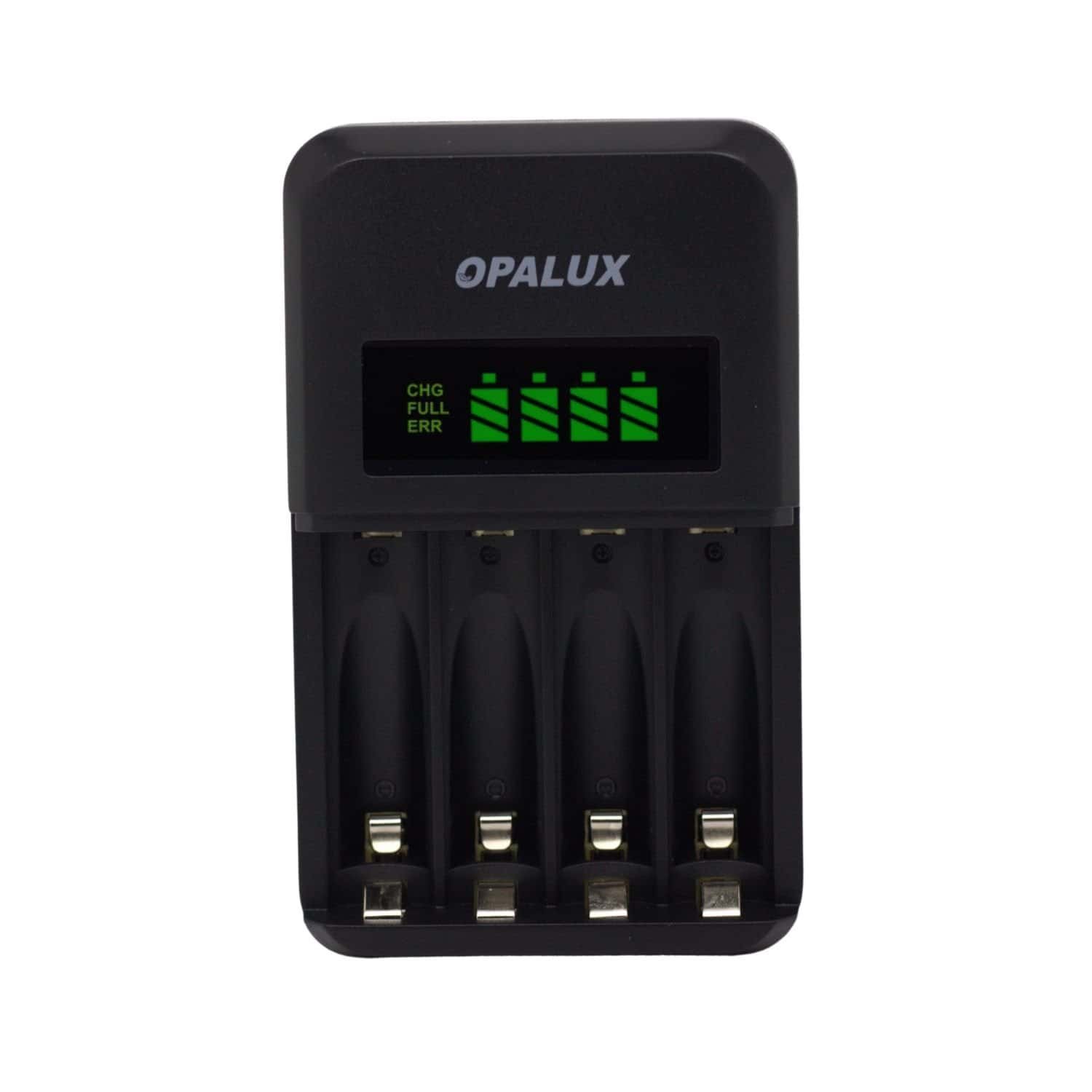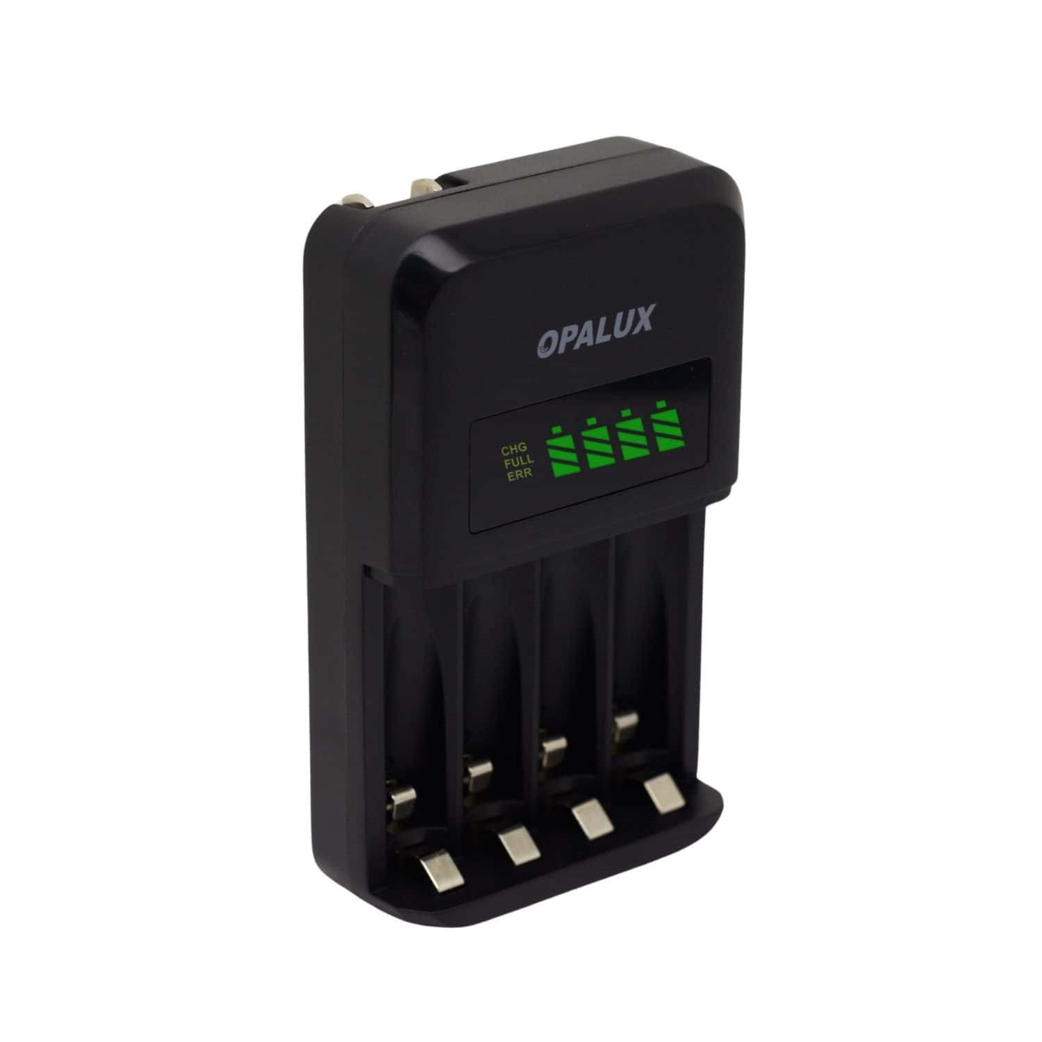 Cargador inteligente para 1 a 4 baterías AA o AAA, cada una con canales de carga independientes.
