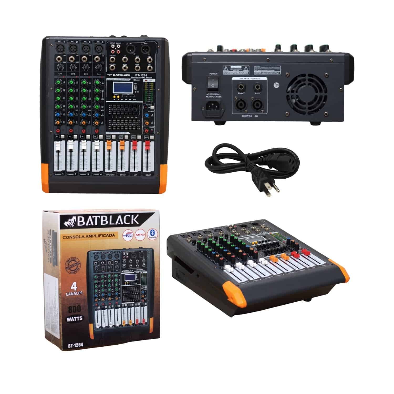 Consola amplificada portátil de 4 canales con entradas combinadas XLR / Jack 1/4” compatibles con micrófonos e instrumentos.