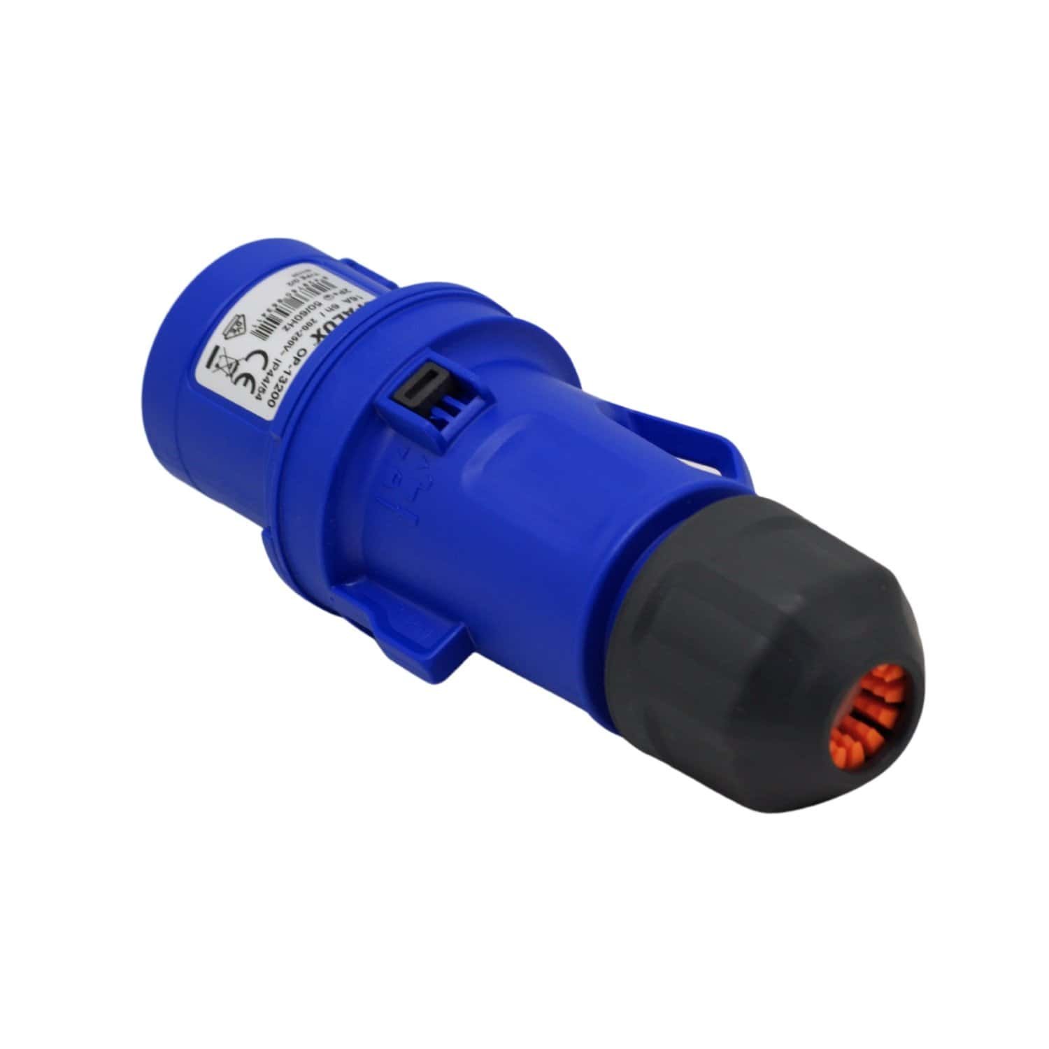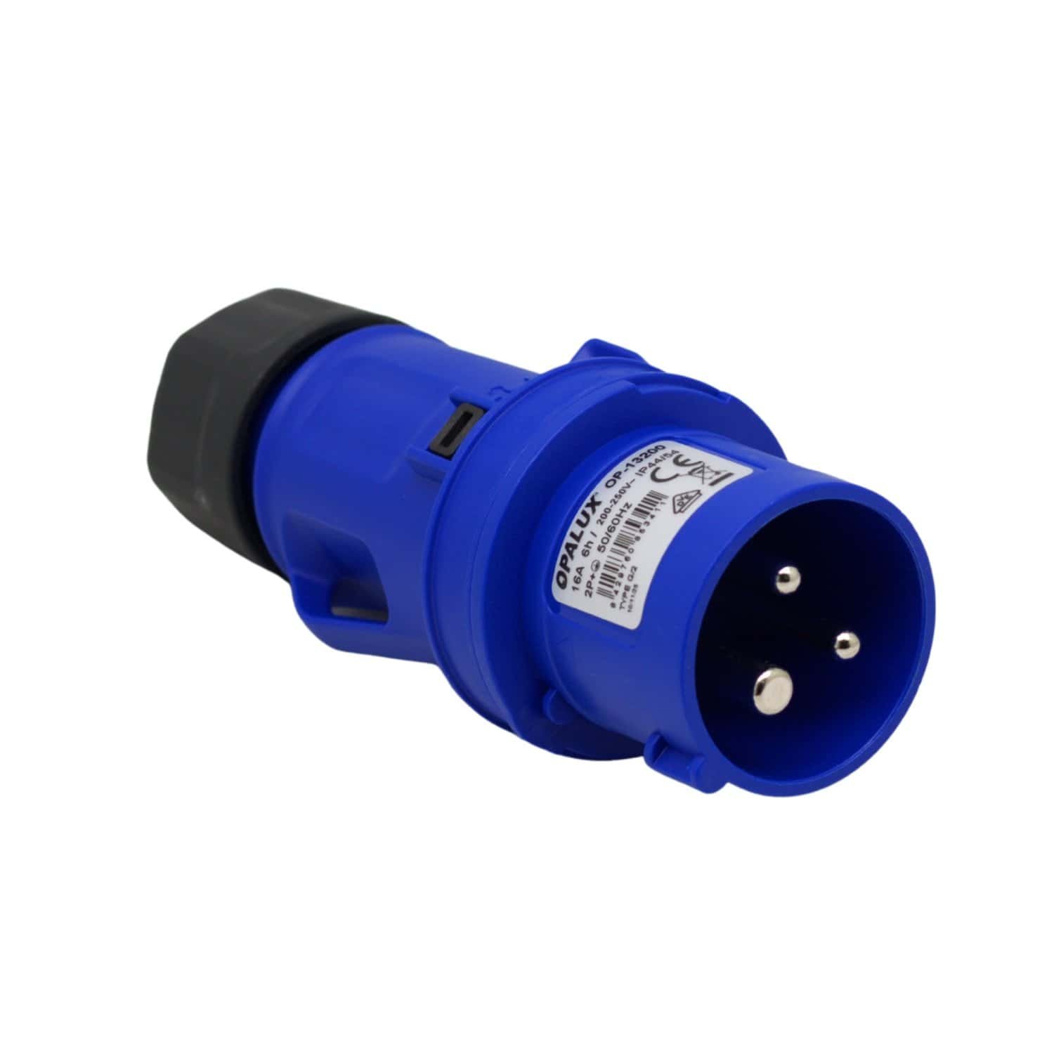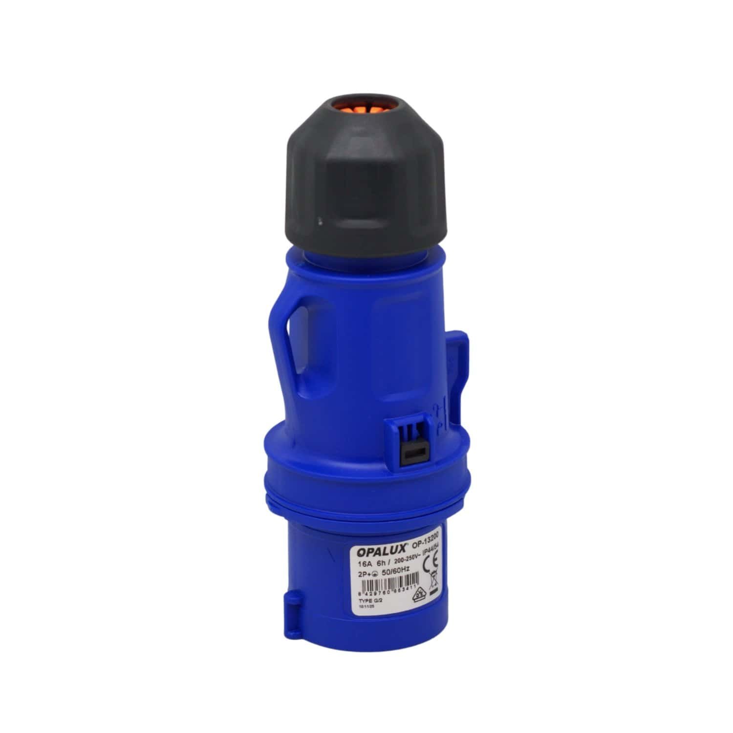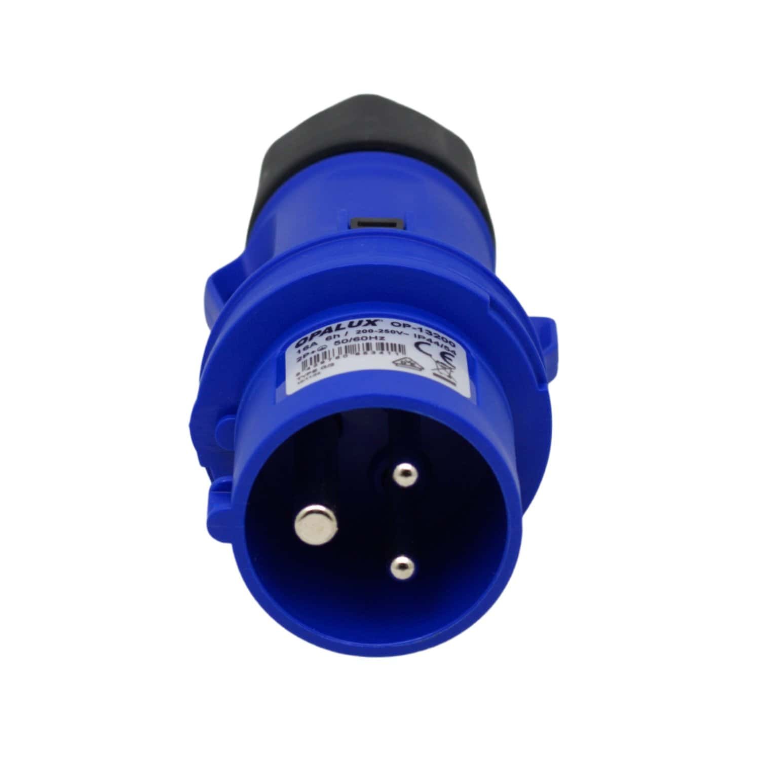 Este enchufe cuenta con una configuración de 2 polos + tierra (2P+T), soportando una corriente máxima de 16A y un rango de tensión de 200 a 250V AC.