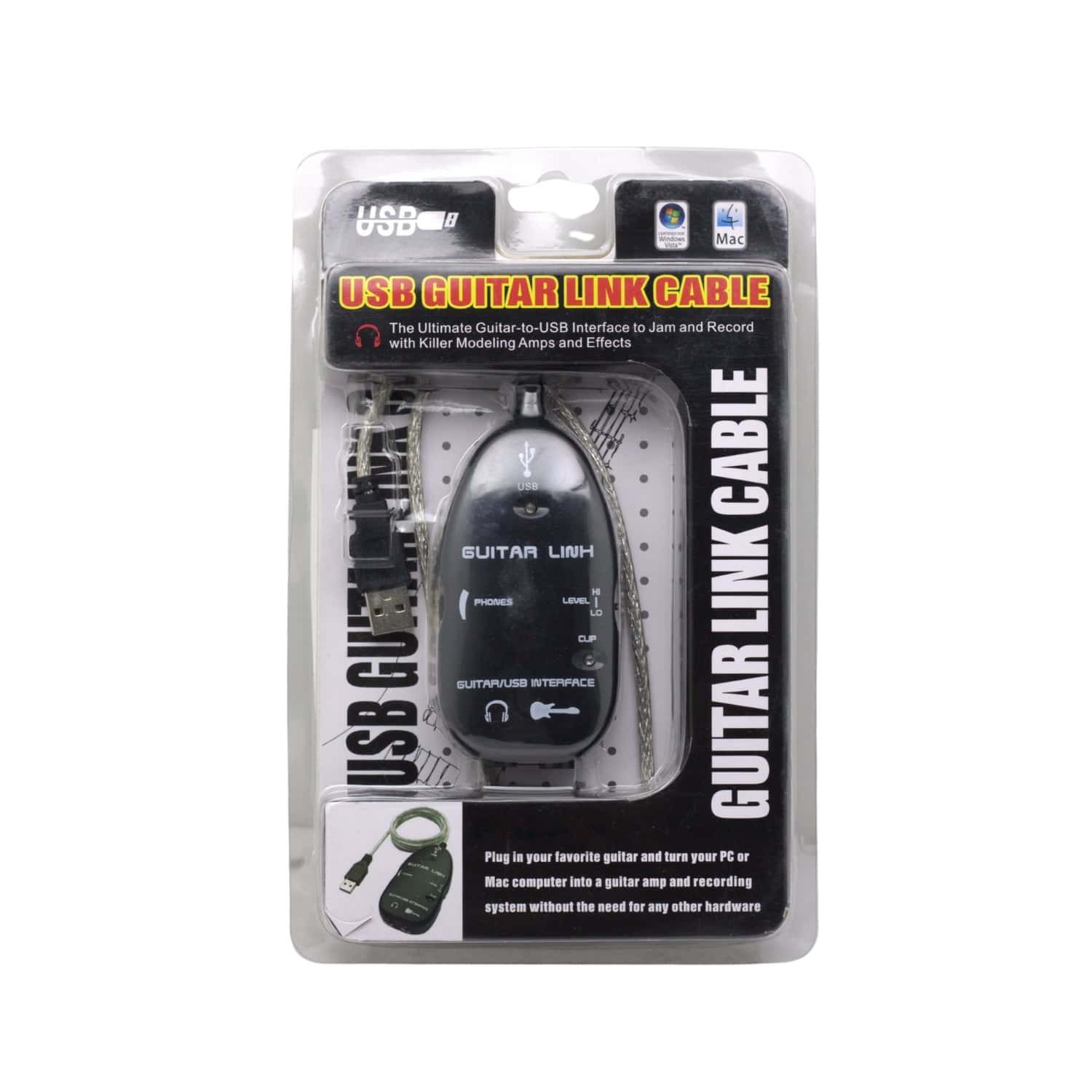 Interfaz de guitarra USB diseñada para conexión directa a computadoras PC o Mac. Permite digitalizar la señal del instrumento sin necesidad de interfaz externa adicional.