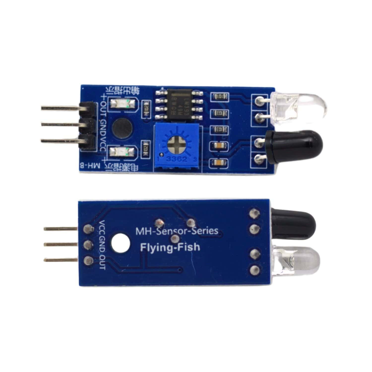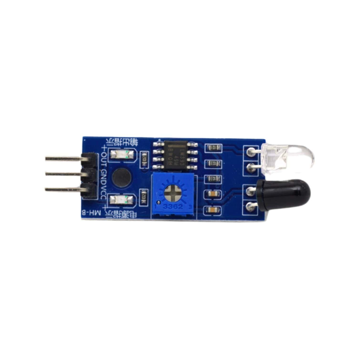 Este módulo utiliza un comparador LM393, ofreciendo una detección precisa y estable de obstáculos mediante reflexión infrarroja. El transmisor IR emite radiación infrarroja invisible al ojo humano, la cual es reflejada por los objetos y captada por el receptor IR, generando una señal digital de salida.