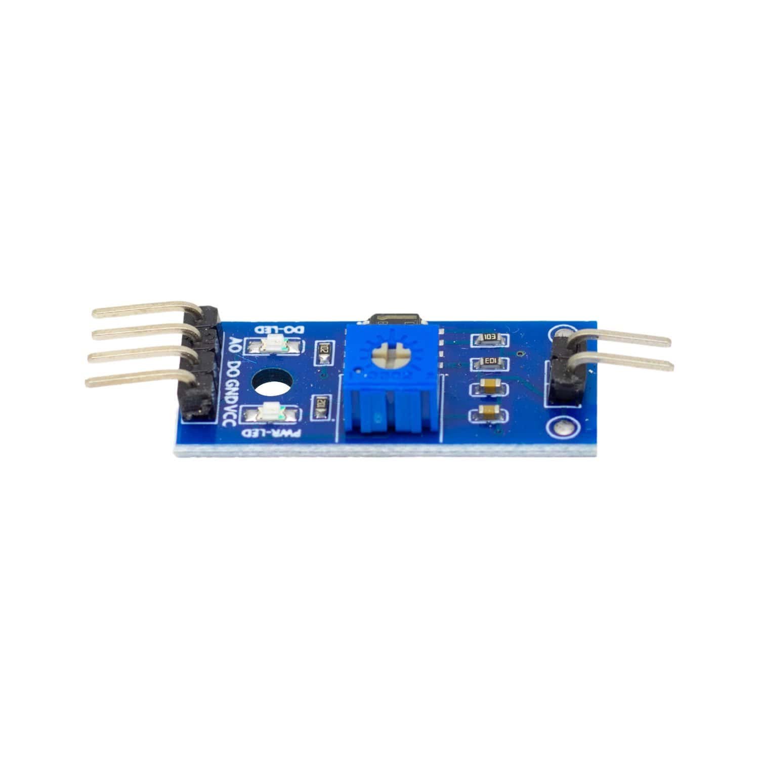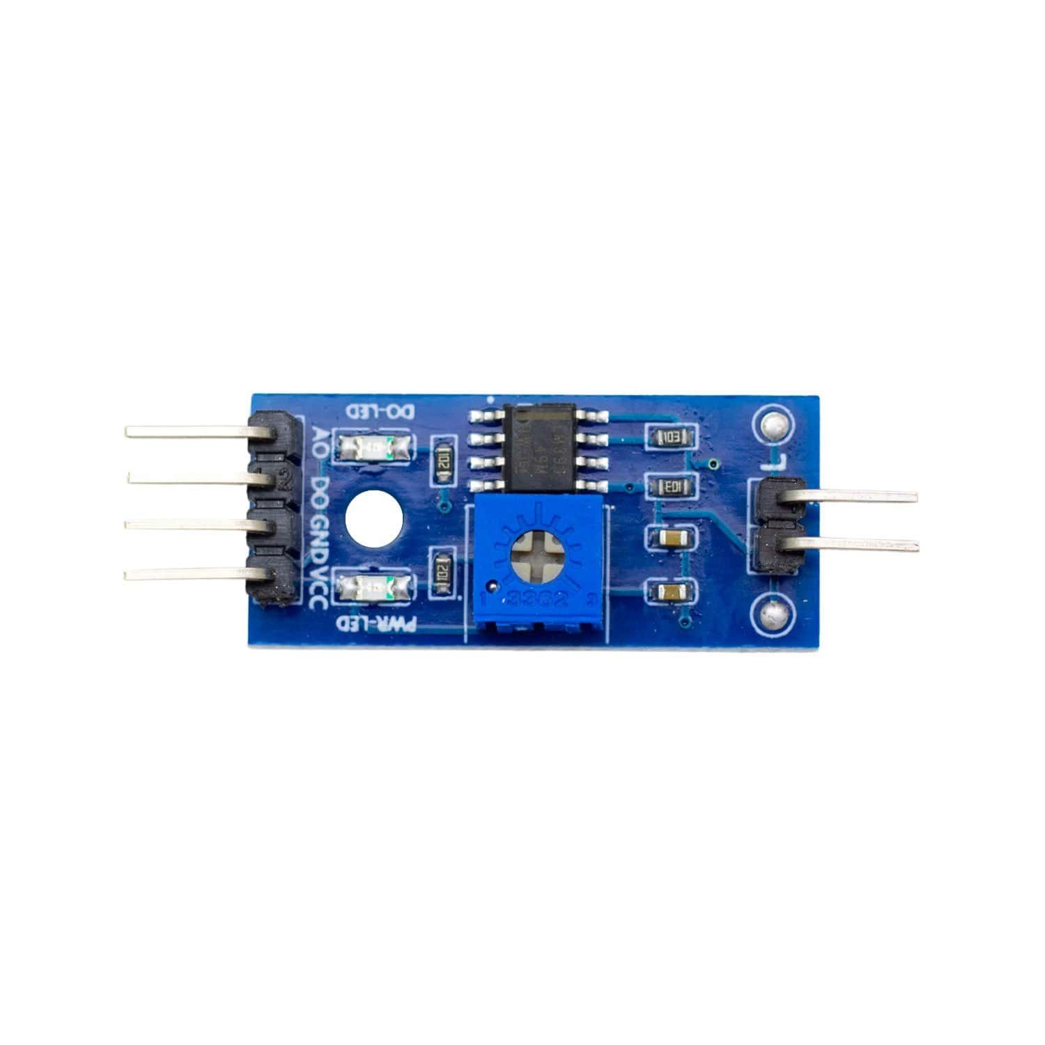 Este módulo ofrece salida analógica y digital, lo que lo hace altamente versátil para distintos tipos de proyectos electrónicos. La salida analógica entrega un voltaje proporcional al nivel de humedad, mientras que la salida digital puede configurarse mediante un potenciómetro integrado para definir un umbral de activación.