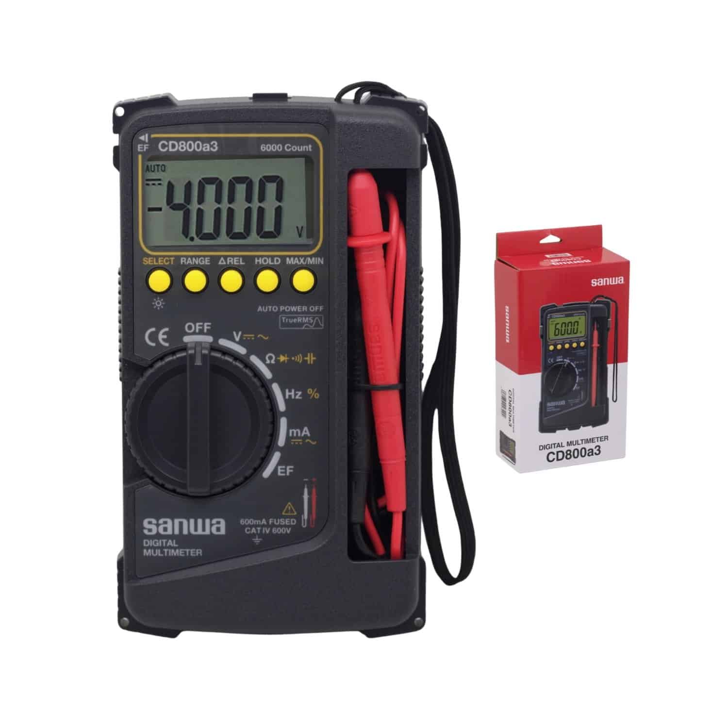 Este modelo permite medir voltaje AC/DC, corriente AC/DC, resistencia, capacitancia, frecuencia, continuidad y prueba de diodos. Cuenta con rango automático, retención de datos, función relativa, registro de valores máximos/mínimos y apagado automático.