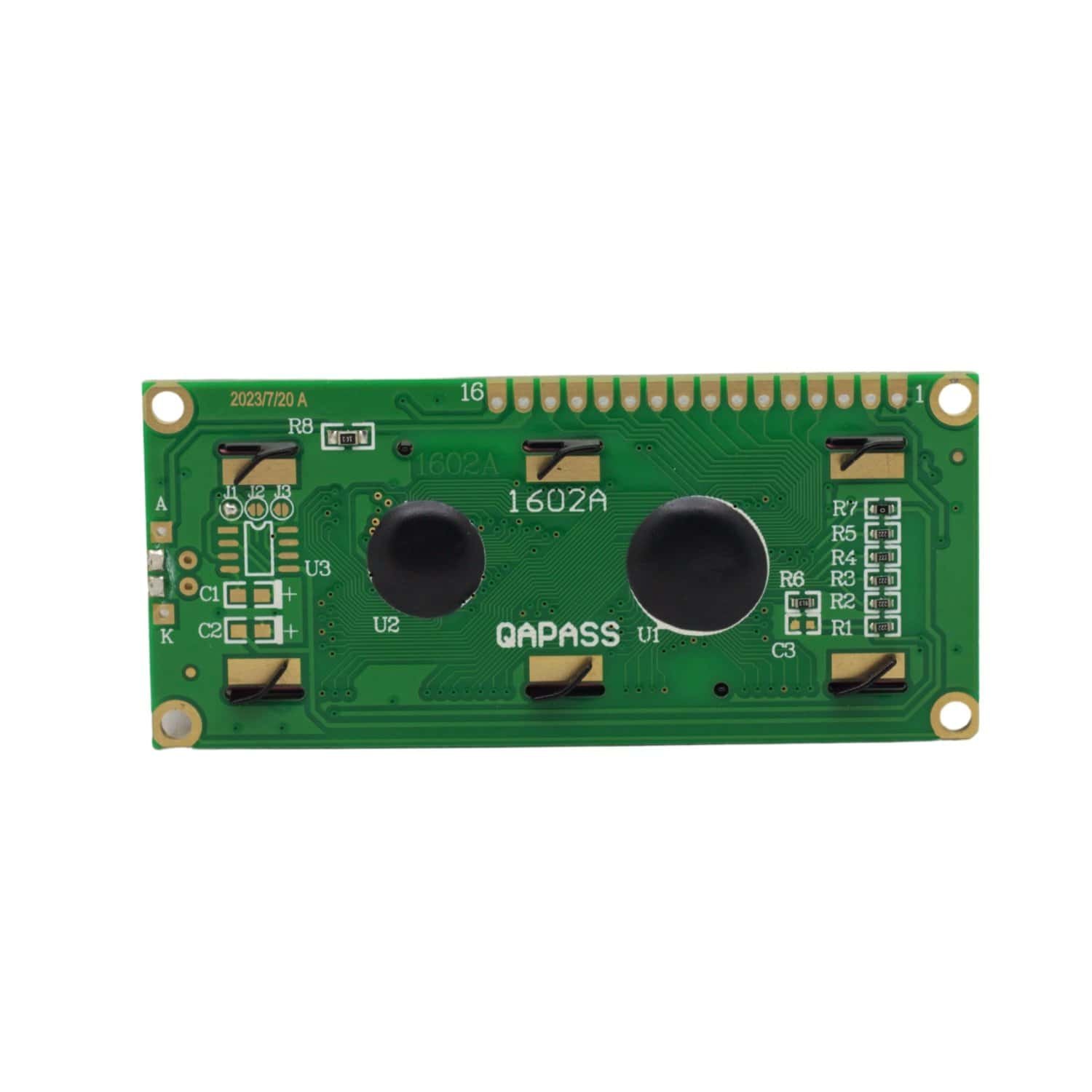 Opera a 5V, cuenta con 16 pines de conexión y un diseño compacto que facilita su integración en prototipos, tableros de control y proyectos educativos o industriales.