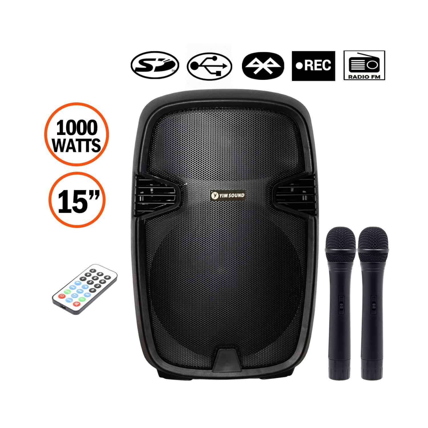 INCLUYE | 1 Parlante amplificado 15″ 1 Micrófonos inalámbricos 1 Control remoto |