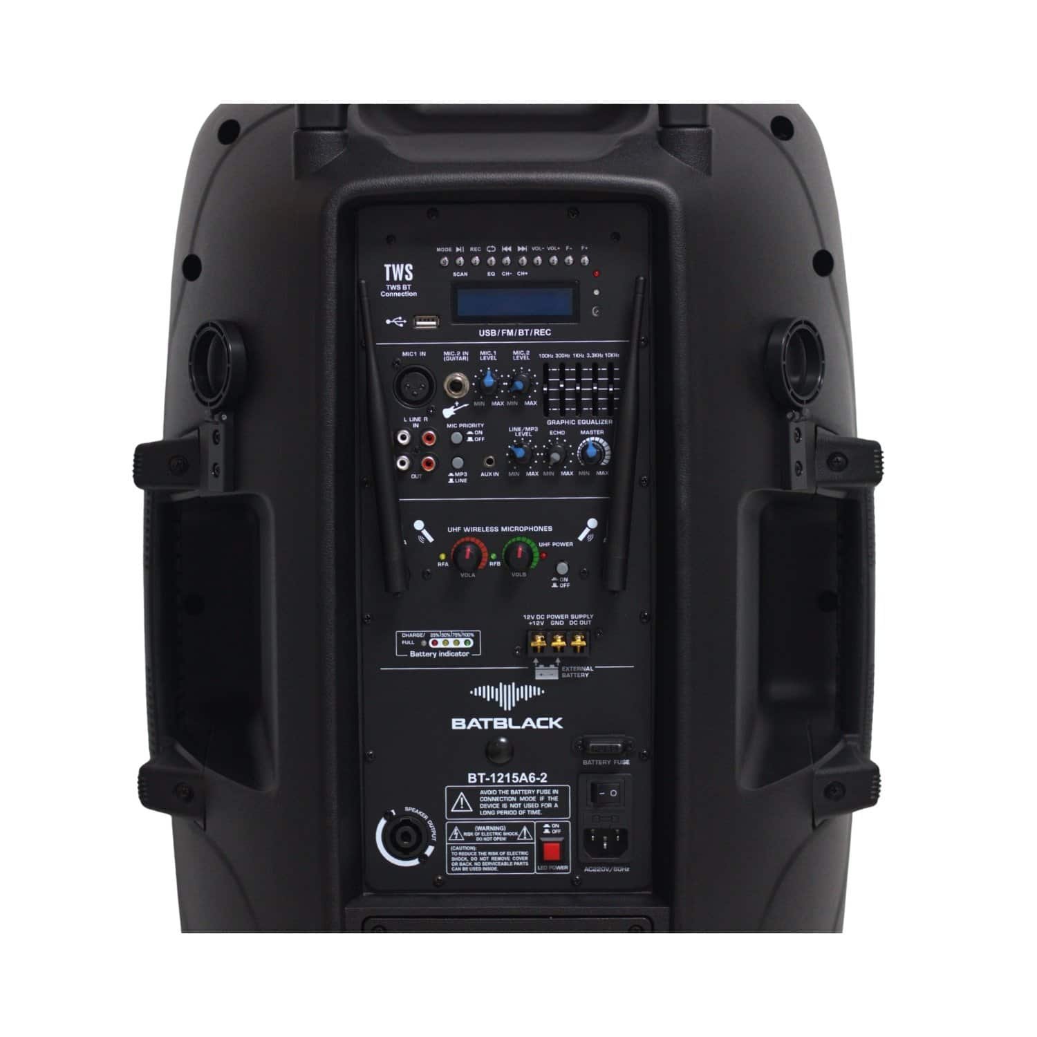 Incluye batería recargable de 12V/7Ah, ecualizador gráfico de 5 bandas, entrada para micrófono tipo XLR, fusible de protección y múltiples funciones integradas. Su construcción está pensada para uso continuo, tanto en interiores como en exteriores.