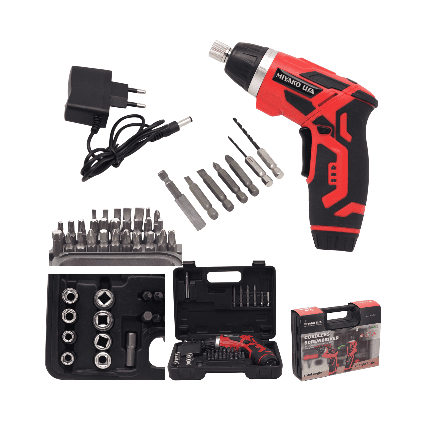 Kit completo que combina potencia y versatilidad en un diseño compacto. Con un motor de 80W, funciona con batería recargable de 1300mAh NI-CD, ofreciendo una velocidad de 180 rpm sin carga, suficiente para trabajos domésticos, de reparación y bricolaje.